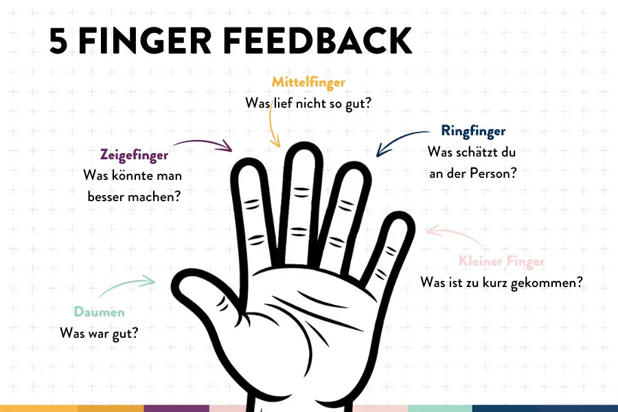 5 Finger Feedback: Diese Fragen kannst du dir bei der 5 Finger Methode beim geben von Feedback stellen.