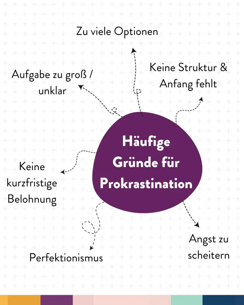 - Keine Struktur, kein erster Schritt. Ohne Plan hat dein Gehirn sofort Ausreden auf Lager: das muss ich jetzt noch nicht machen. Davor brauche ich noch „…“.